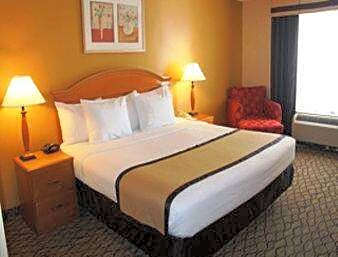 This room includes a flat-screen TV, microwave and refrigerator.